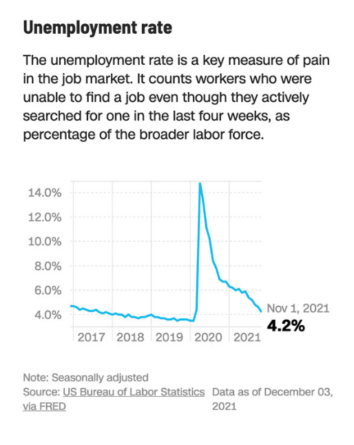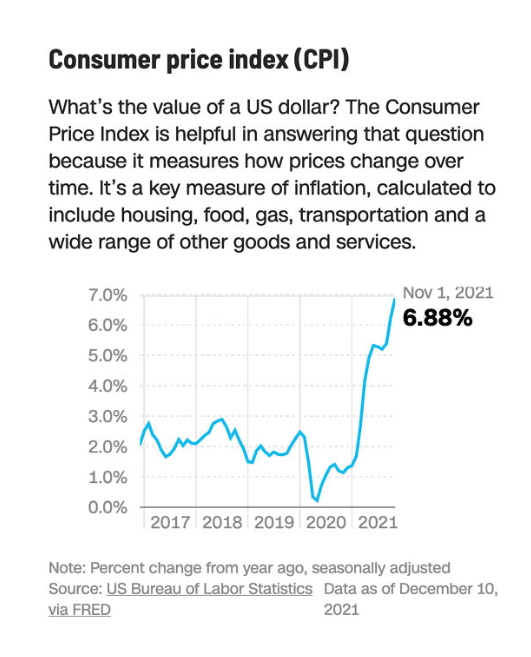 Meanwhile, who knows what to expect from the wild cards that have so far had little impact on our financial landscape? Covid is peaking again, with the new Omicron variant potentially creating the largest spike in the pandemic to date; nobody knows what the economic impact will be when the final measurement comes back a few months hence. Billions of dollars are locked up in various cryptocurrencies (there are more than 700 of them currently), and the recent severe price downturn might cause some investors to cash out of their stock portfolios. Meme stocks are still trading at crazy valuations, which so far have had little impact on the broader market, and there are continuing worries about supply chain disruptions and the future health of the Chinese economy.